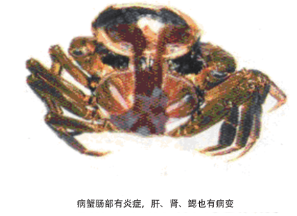 【症状】病蟹行动迟缓,吃食减少或不吃食。肠内无粪便,肠壁发炎充血,轻压肛门有黄色粘液流出。