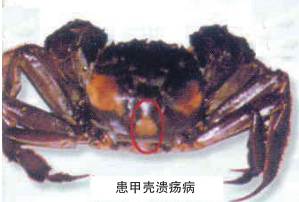 【病因】蟹体受伤后被假单胞菌、黄杆菌等能分解几丁质的细菌感染,同时水中重金属离子偏高。幼蟹至成蟹均可能染有此病。